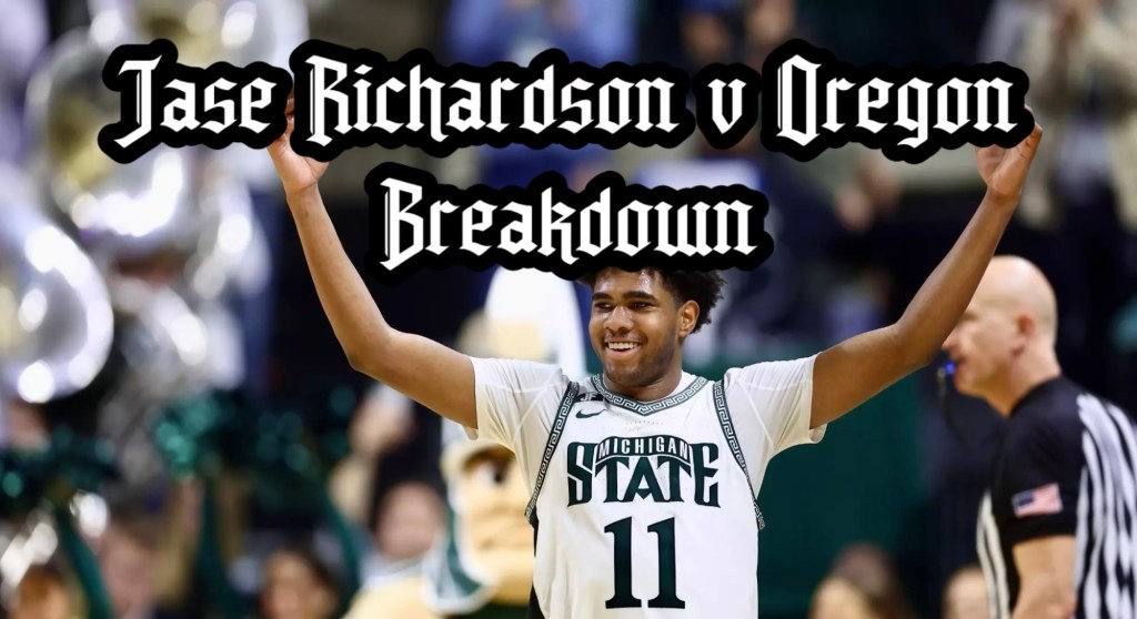 The way the first half of this game went, you’d think Michigan State didn’t have a chance. They found themselves down by 14 against Oregon but managed to storm back for the win. It took a full team effort, but Jase Richardson—who I’d been meaning to watch—carried the scoring load.