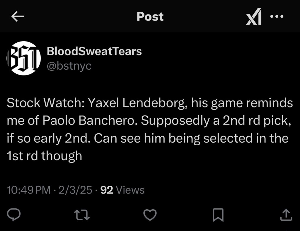 Yaxel Lendeborg is a fascinating prospect, and I expect to hear his name more as we approach the draft. After watching some highlights, it’s clear he has a nice touch from three as well. He plays both ends of the floor, has a high basketball IQ, and shows the ability to create and score. A second-round pick? I’m not so sure. I’ll continue watching and assessing as the season progresses.